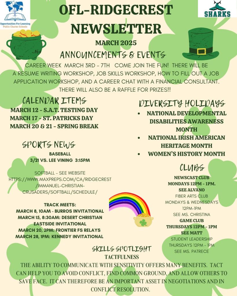 March Sharks Newsletter Ridgecrest